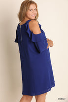 Cobalt Cold Shoulder Dress With Ruffles Curvy