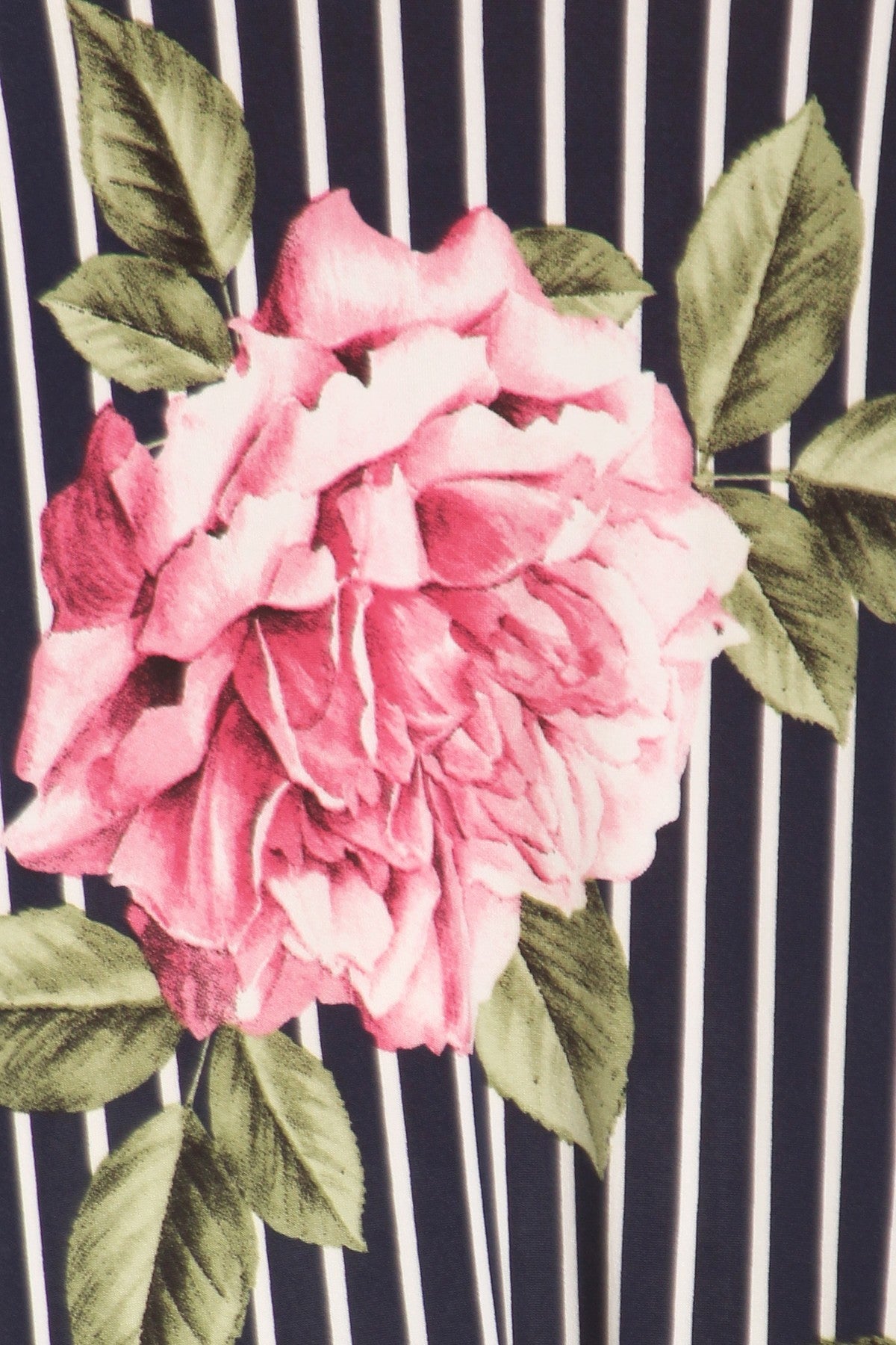 Navy Striped Floral Print Short Sleeve Top with Pockets Curvy