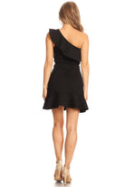 Little Black One Shoulder Ruffle Dress